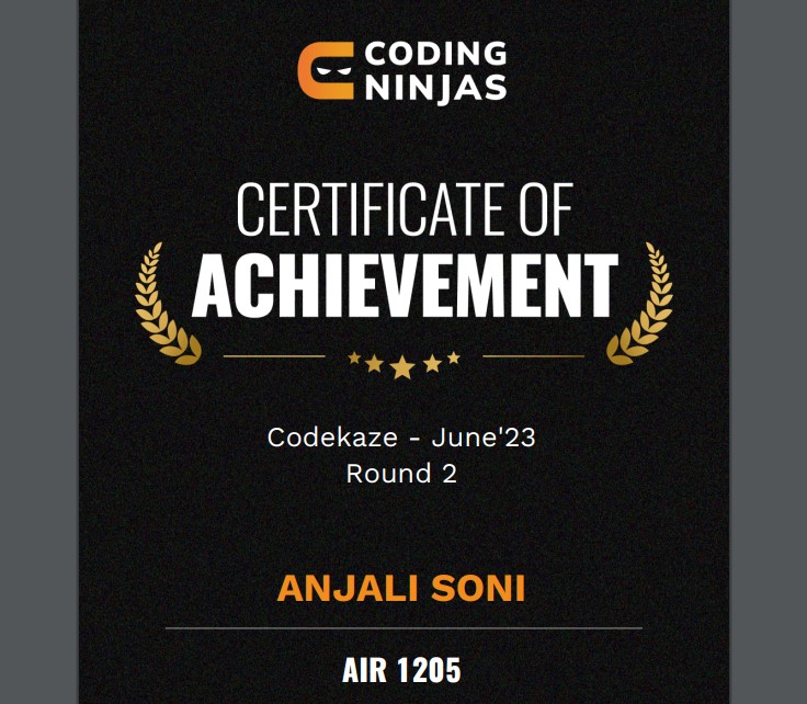 I beleive that Consistency is key of success. As a passionate and driven individual, I have made it a habit to consistently participate in coding contests on renowned platforms such as LeetCode, CodeChef, and GeeksforGeeks (GFG). I am dedicated to this journey of continuous improvement, leveraging every opportunity to strengthen my problem-solving toolkit and ultimately achieve my goals in the world of computer science and engineering.
