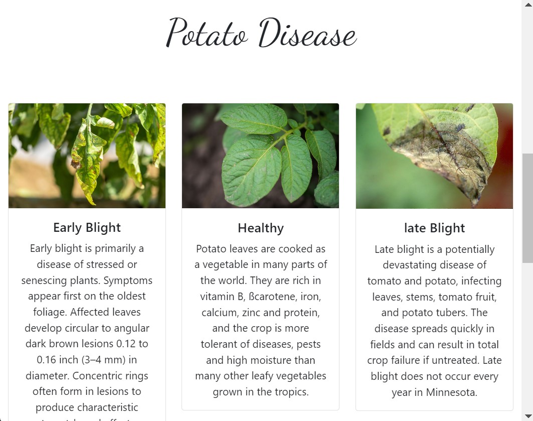 - The applicability of Deep Learning in the field of Agriculture an Image Classification Model that will categorize potato disease using different algorithms such as CNN ,data augmentation.